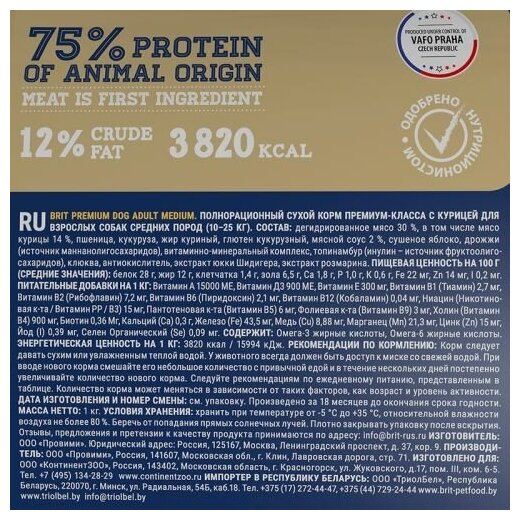BRIT PREMIUM DOG ADULT MEDIUM для взрослых собак средних пород с курицей (3 кг х 3 шт)