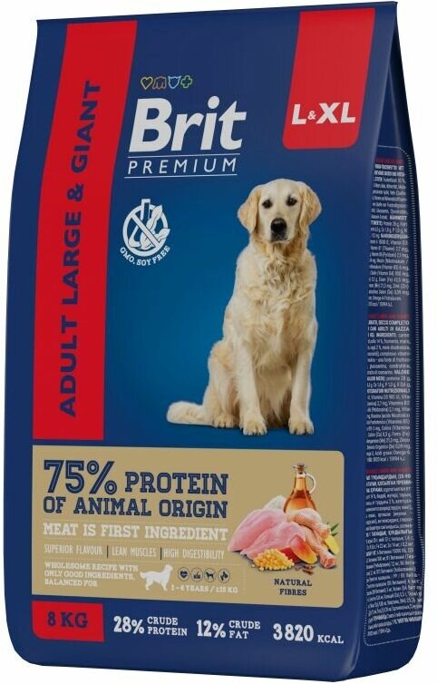 Корм Brit Premium Adult Large & Giant для собак крупных и гигантских пород, с курицей, 15 кг