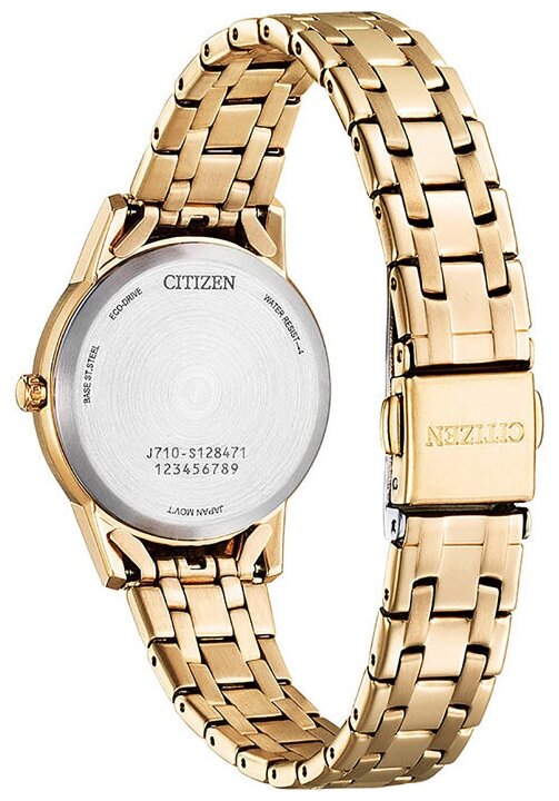 Лучшие цены. • Точный кварцевый калибр J710 с системой питания и подзарядки от солнечного света ECO-DRIVE. Запас хода 240 дней • Система ECO-DRIVE - патентованная технология CITIZEN заключающаяся в размещении фотоэлементов скрытых под циферблатом и постоянно подзаряжающих аккумулятор часов. • Функция индикации заряда (EOL). • Индикатор даты. • Точность хода не хуже -/+15 сек./в месяц. • Минеральное стекло устойчивое к царапанию. • Белый циферблат с часовыми метками в виде точек и римских цифр украшен кристаллами. Магазины в вашем городе.