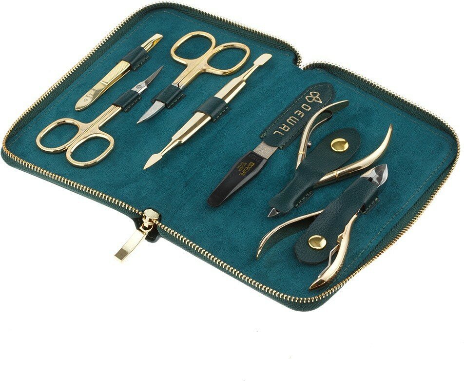 Маникюрный набор DEWAL серии "Современная классика" 7 предметов, футляр натуральная кожа, цвет зеленый (904GREEN)