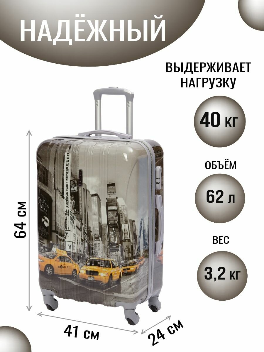 Чемоданы Чемодан на колесах дорожный средний багаж для путешествий m TEVIN размер М 64 см 62 л легкий 3.2 кг прочный поликарбонат с картинкой