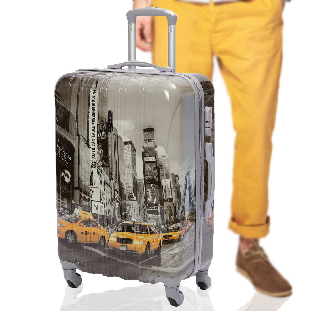 Чемодан на колесах дорожный средний багаж для путешествий s+ TEVIN размер С+ 60 см 52 л небольшой и легкий 2.6 кг прочный поликарбонат с изображением