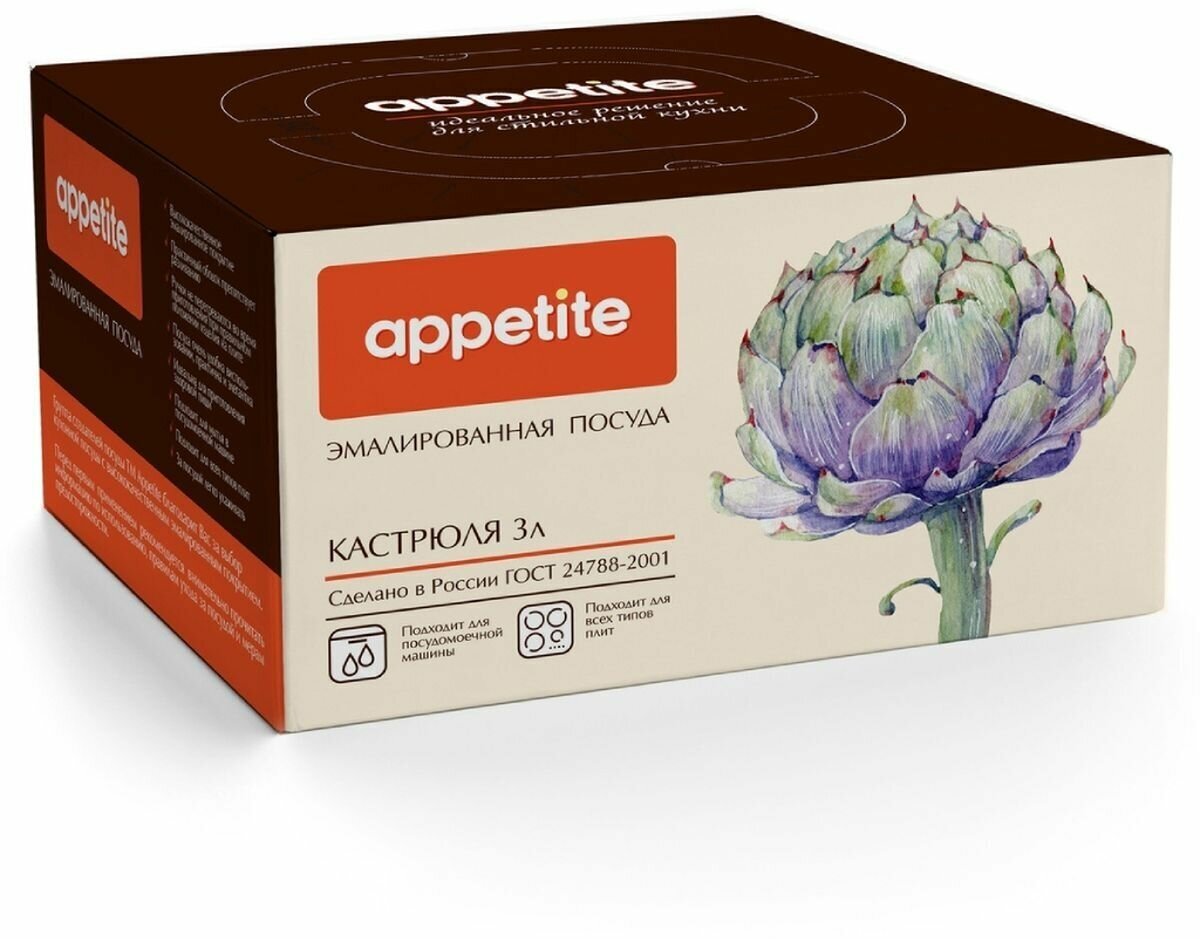 Лучшие цены. Кастрюля из серии Maison ТМ Appetite. Эмалированная посуда наиболее гигиенична, устойчива к воздействию различных кислот, солей и щелочей. Элегантный и простой дизайн приглянется каждому, подойдет для любой кухни, станет элегантным элементом в интерьере, порадует удобством и практичностью. Каждая кастрюля в комплекте со стеклянной крышкой, в крышке имеется пароотвод, удобная ручка в виде скобки. Аналогично на кастрюле удобные стальные ручки в виде скоб установлены по бокам. Магазины в вашем городе.