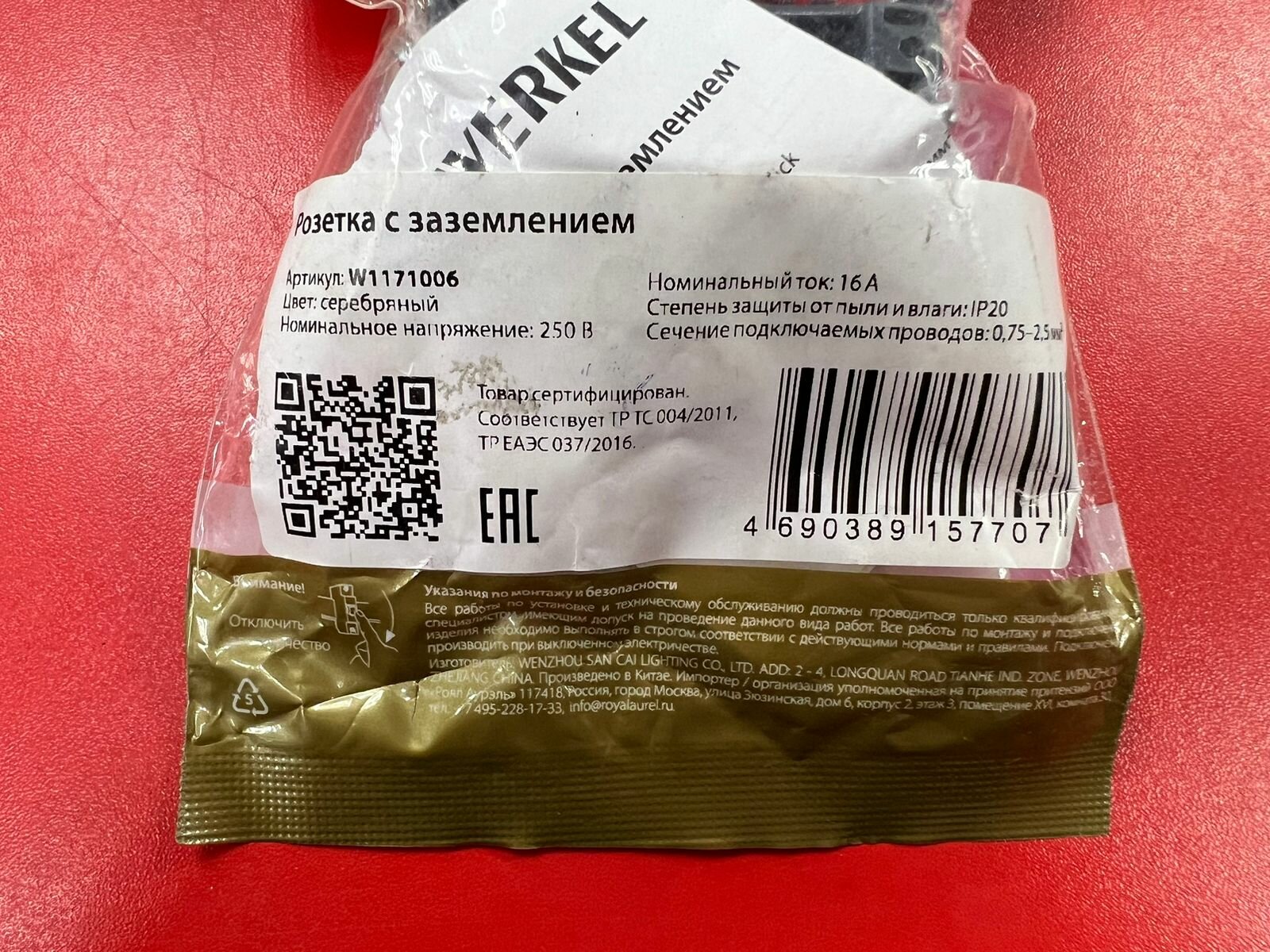 Розетка с заземлением Werkel W1171006, цвет серебряный, IP20 540 ₽ Подробнее