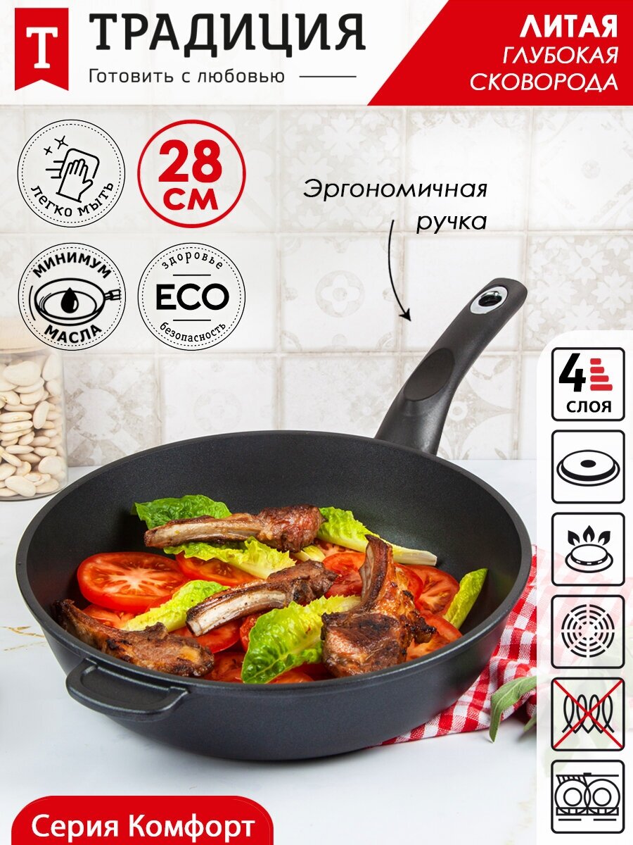 Традиция ТК2281 Сковорода литая 28см Комфорт .