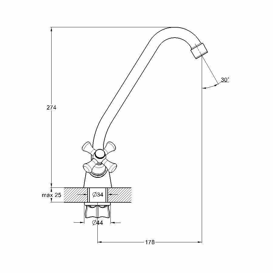 смеситель G.Lauf для кух. мойки с пов. изливом (Lt), кер. (1/2) 180°, гайка (корона) QSL4-A827