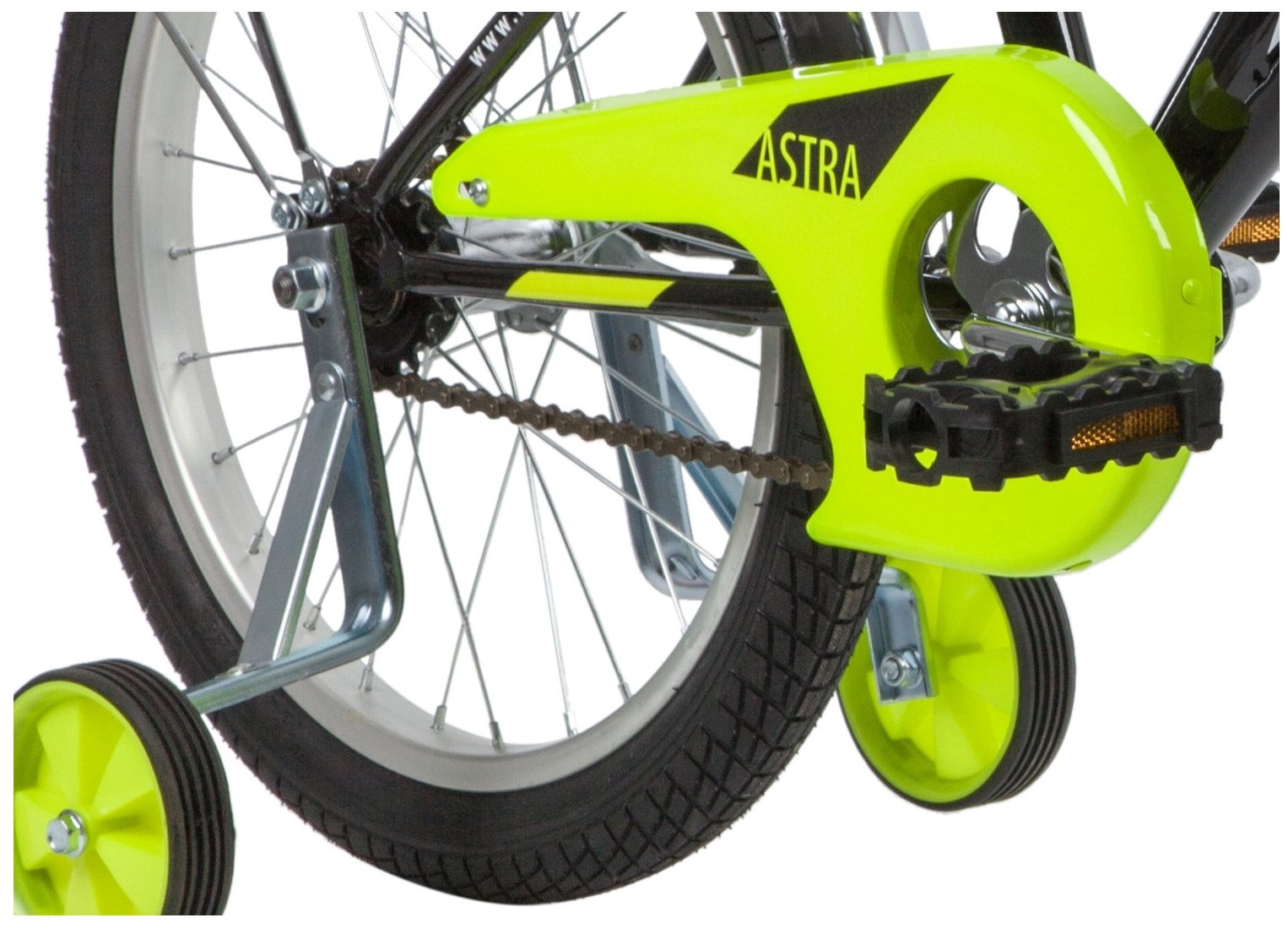 Лучшие цены. Велосипед, предназначенный для детей в возрасте от четырех до восьми лет, без переключения передач. Технические особенности: стальная рама, жесткая стальная вилка, одинарные алюминиевые обода, ножные педальные тормоза, защита цепи, багажник, крылья, съемные боковые колеса, мягкая накладка на руле, звонок. Подходит для обучения и легких прогулок. Диаметр колес - 18 дюймов. Вес - 11,5 кг. Магазины в вашем городе.