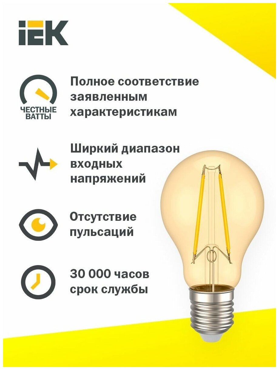 Лампа LED A60 золото 11Вт 230В 2700К E27, IEK LLF-A60-11-230-30-E27-CLG (1 шт.)
