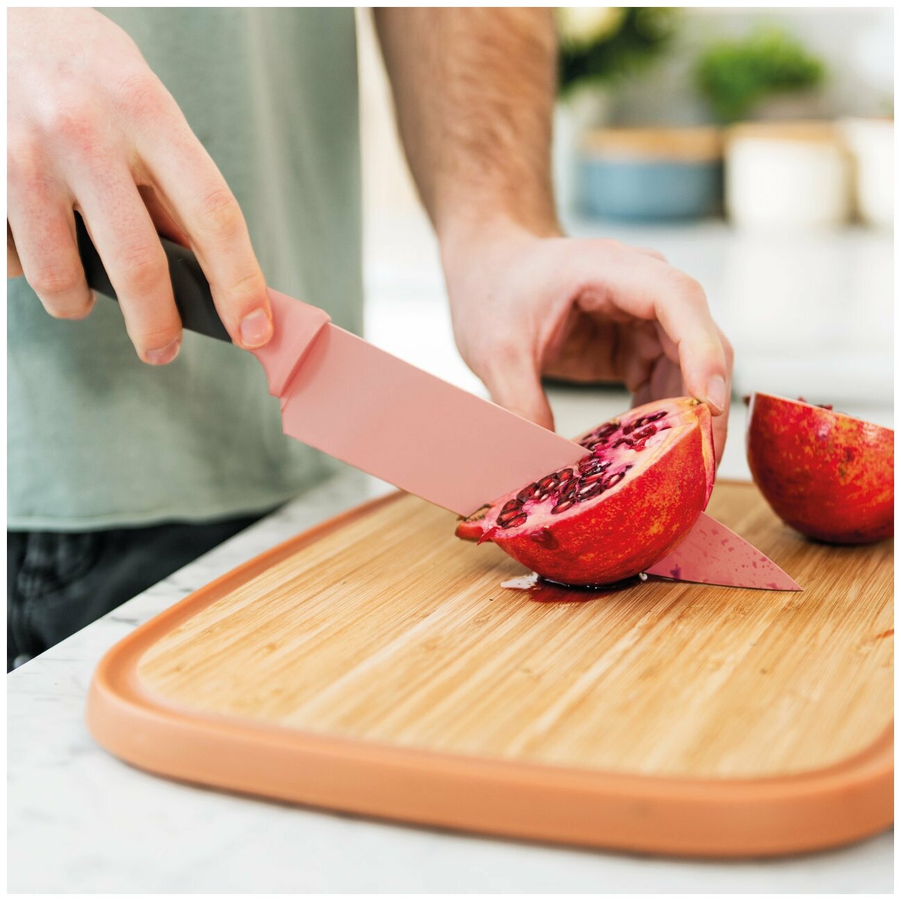 Лучшие цены. Хотите добавить ярких цветов на вашу кухню? Этот поварской нож - идеальное дополнение! Его можно использовать для нарезки рыбы или мяса, шинковки овощей, зелени, и почти любых других задач. Мягкая рукоятка в сочетании с острым лезвием из нержавеющей стали с покрытием от налипания делают этот нож особенно приятным в работе. В комплекте с ножом идёт чехол, который позволит безопасно хранить этот нож или перевозить его. Внешние размеры: 34x6,5x2,5см. Длина лезвия: 19см. Материал: нержавеющая сталь (X30Cr13). Магазины в вашем городе.