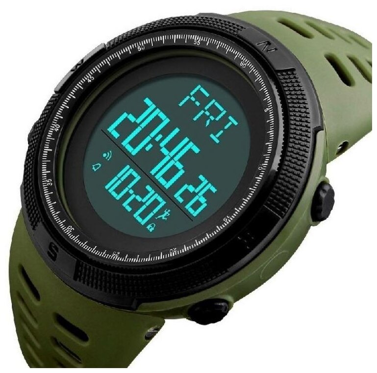 Наручные часы армейские тактические с будильником и секундомером SKMEI водонепроницаемые военные зеленого цвета