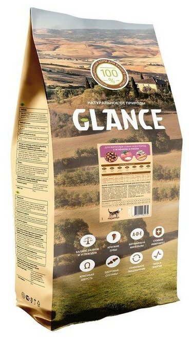 Лучшие цены. Glance (Глэнс) с ягненком и рисом – полнорационный сухой корм для взрослых собак. Питательный сбалансированный рацион подходит для ежедневного кормления собак всех пород. Дополнительно корм обогащен витаминно-минеральным комплексом, который обеспечивает собаку суточной потребностью микроэлементов. Основные ингредиенты: Мясо и мясные субпродукты – самый важный источник животного протеина. Злаковые культуры содержат растительный белок, углеводы, участвуют в пищеварении. Магазины в вашем городе.