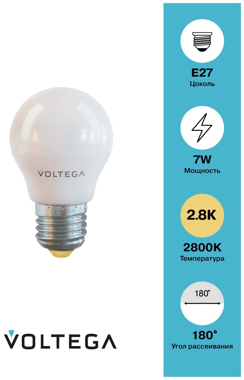 Лампочка Лампа светодиодная Voltega E27 7W 2800К матовая VG2-G45E27warm7W 7052