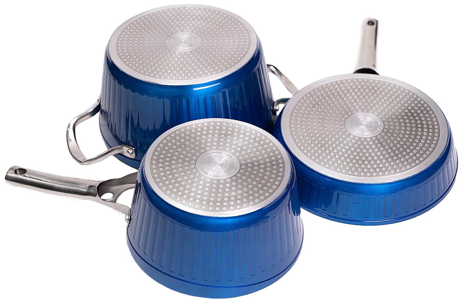 Кастрюля Набор посуды GALAXY LINE GL 9515 синий 5пр с крышками: кастрюля 4,6л, ковш 2,7л, сковорода 24см