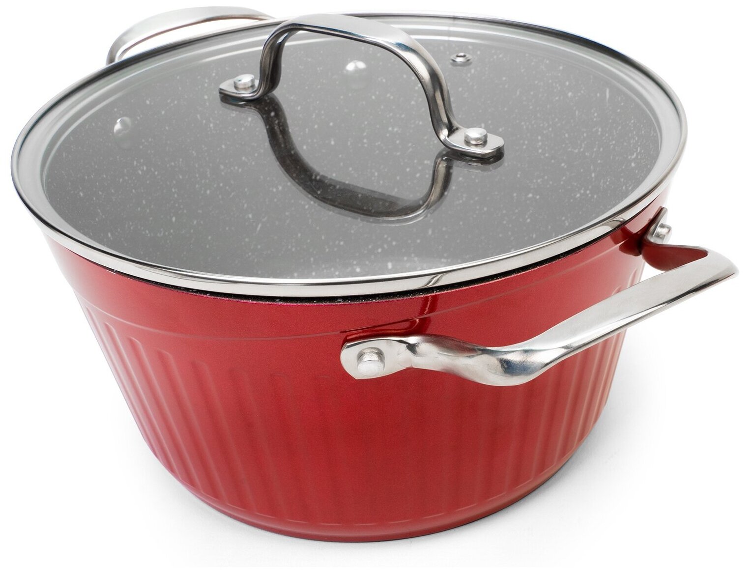 Набор посуды 5предметов Galaxy GL 9515 красный : кастрюля с крышкой 24*12,5 см (4,6л ), ковш с крышкой 20*10,5см (2,7л),сковорода 24*5,3см, антипригарное мраморное покрытие, литой высококачественный алюминий толщиной 3,5 мм, ручки из нержавеющей стали, кр