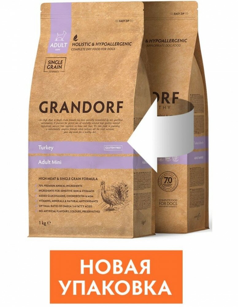 GRANDORF SINGLE GRAIN DOG ADULT MINI TURKEY низкозерновой для взрослых собак маленьких пород с индейкой (1 + 1 кг) 3 235 ₽ Подробнее