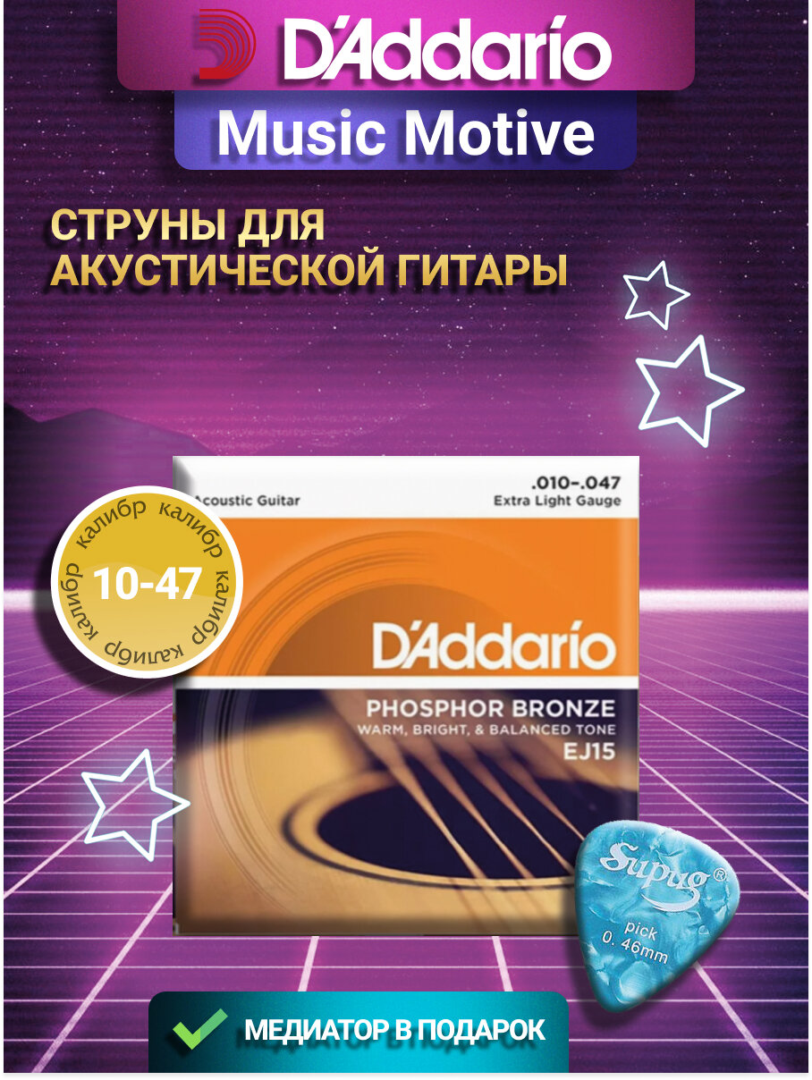 Струны D`Addario EJ10 BRONZE 80/20 10-47 бронза для акустической гитары 720 ₽ Подробнее