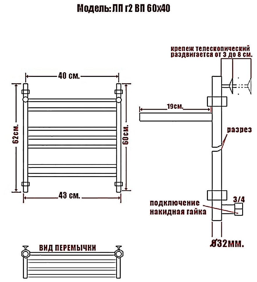 Полотенцесушитель Полотенцесушитель водяной ЛП (г2) ВП 60/40 н.р.