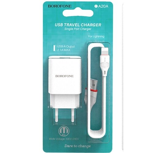Borofone BA20A Sharp 1xUSB 2.1A + кабель Lightning White