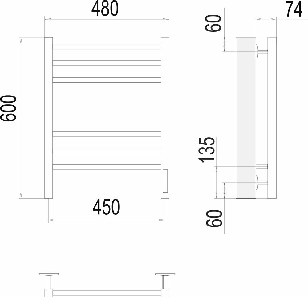 Полотенцесушитель с/т Terminus Электро КС Ватикан П6 450/600 (3+3)(new встр димм) 9005 черный матовы