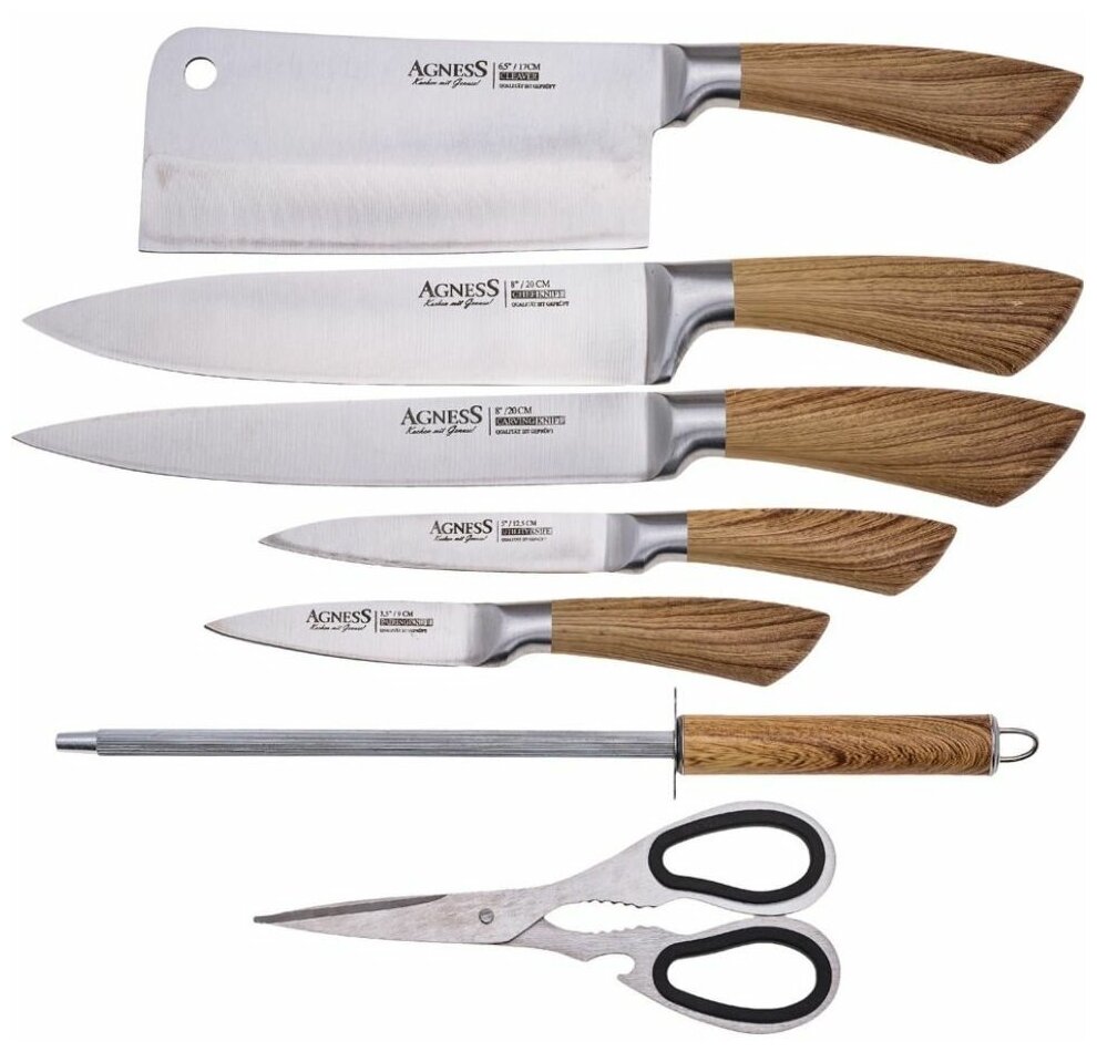 Набор ножей с ножницами и мусатом 8 предметов Agness (911-640)