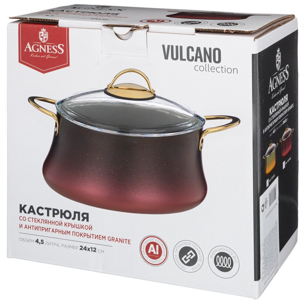 Лучшие цены. Кастрюля с антипригар. покрытием granite, серия vulcano, 24х12 см, 4,5л, pfoa free Agness (953-026). Магазины в вашем городе.