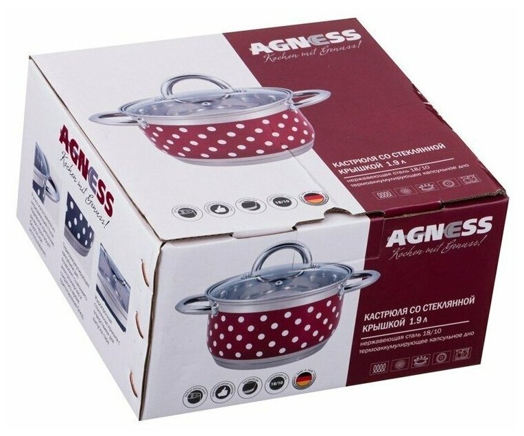 Лучшие цены. Кастрюля со стеклянной крышкой горошек нерж. сталь 1,9 л диаметр 16 см высота 9 см Agness. Магазины в вашем городе.