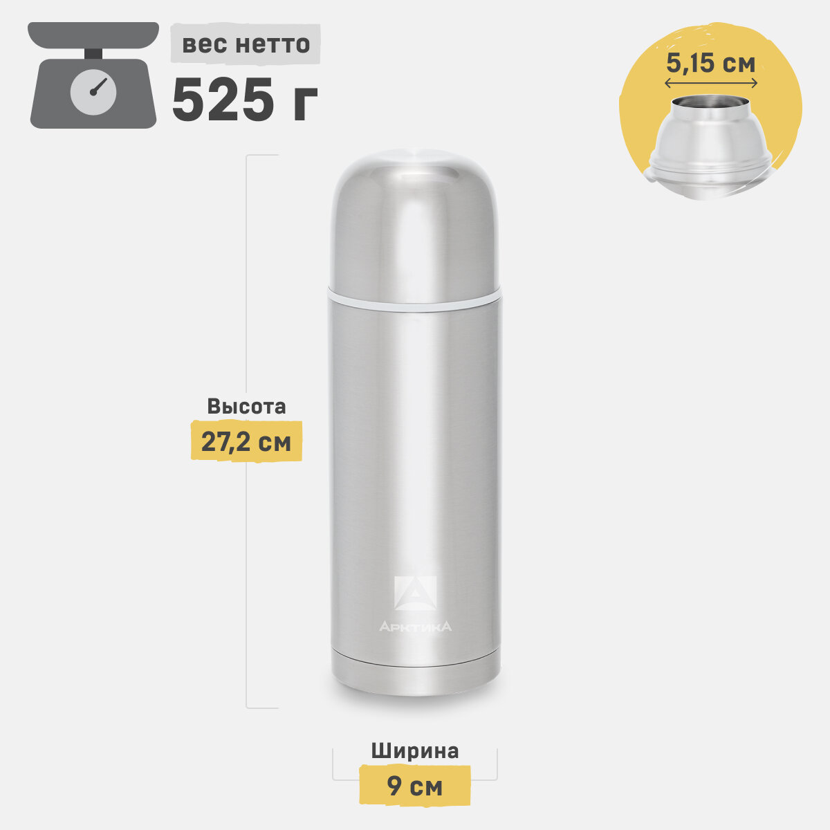 Классический термос Арктика 105, 0.5 л, серебристый