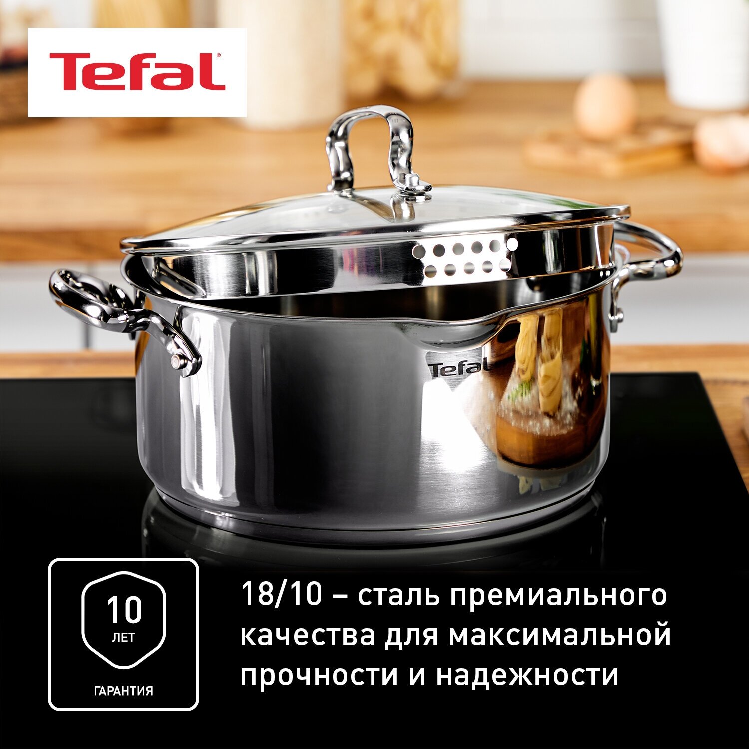 Кастрюля 24 см Tefal Duetto+ G7194655 с крышкой, из нержавеющей стали, подходит для индукциинные, со сливным носиком 3 999 ₽ Подробнее