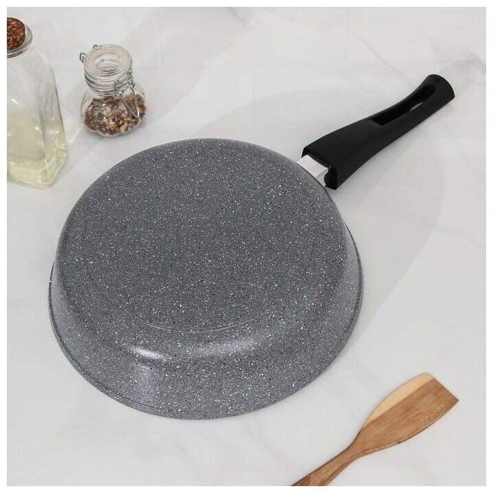 Сковорода Доляна «Марбл», d=26 см, стеклянная крышка, съёмная ручка, антипригарное покрытие, цвет серый