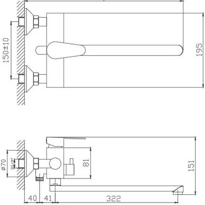 Смеситель для ванны Haiba HB802 универсальный, нержавеющая сталь (HB22802)