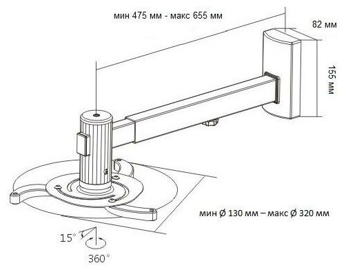 Wize WTH 4765 Универсальное настенное крепление WTH 4765 для УКФ проектора, расст. между крепеж. отверст. 320мм, наклон +15/-15,враще \6\ 128684