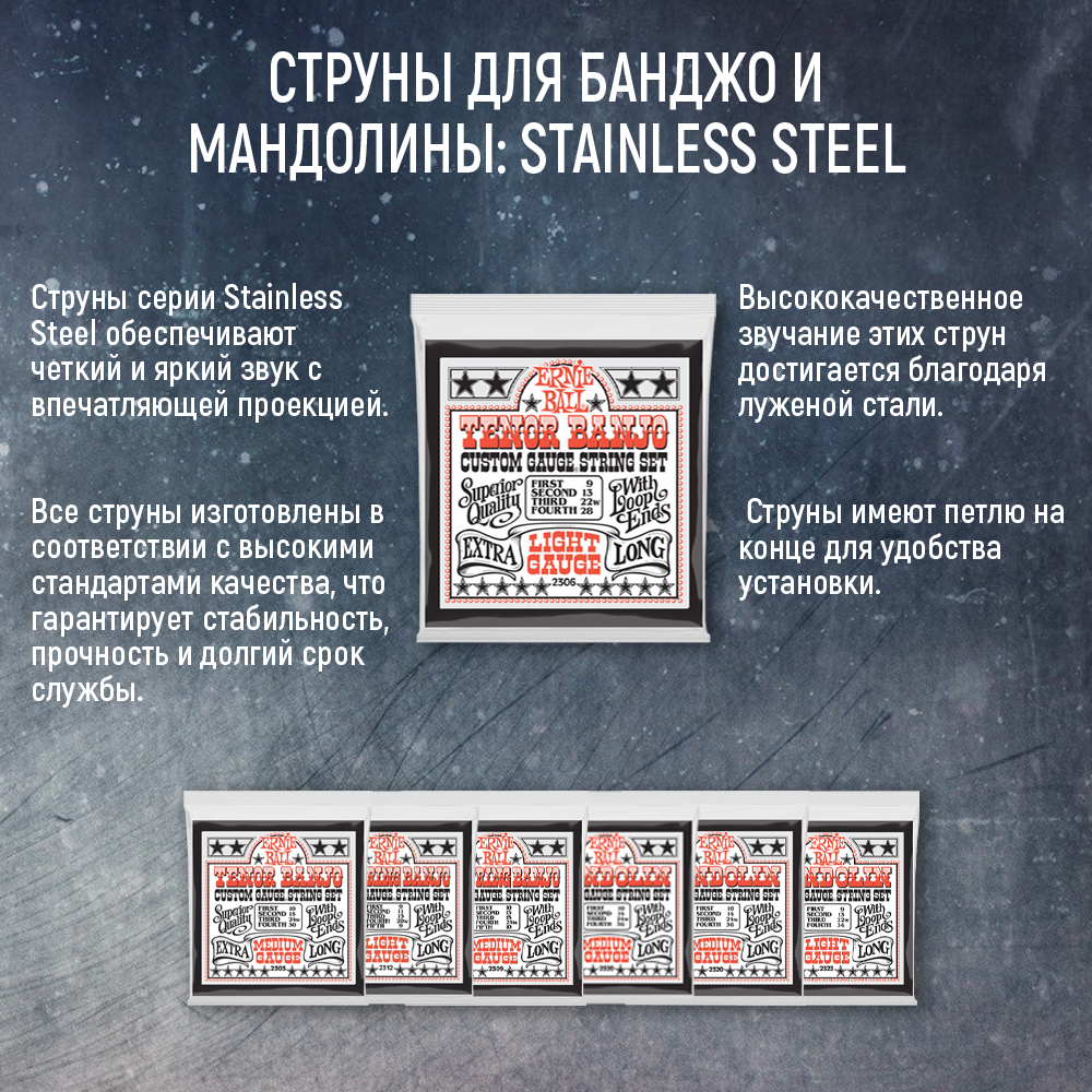 Струны Ernie Ball 2323 Stainless Steel Light струны для мандолины (9-13-22w-34)