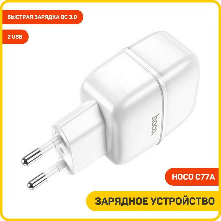 Зарядное устройство Сетевое зарядное устройство (СЗУ) Hoco C77A (2 USB) + кабель Type-C, 2.4 А, белый