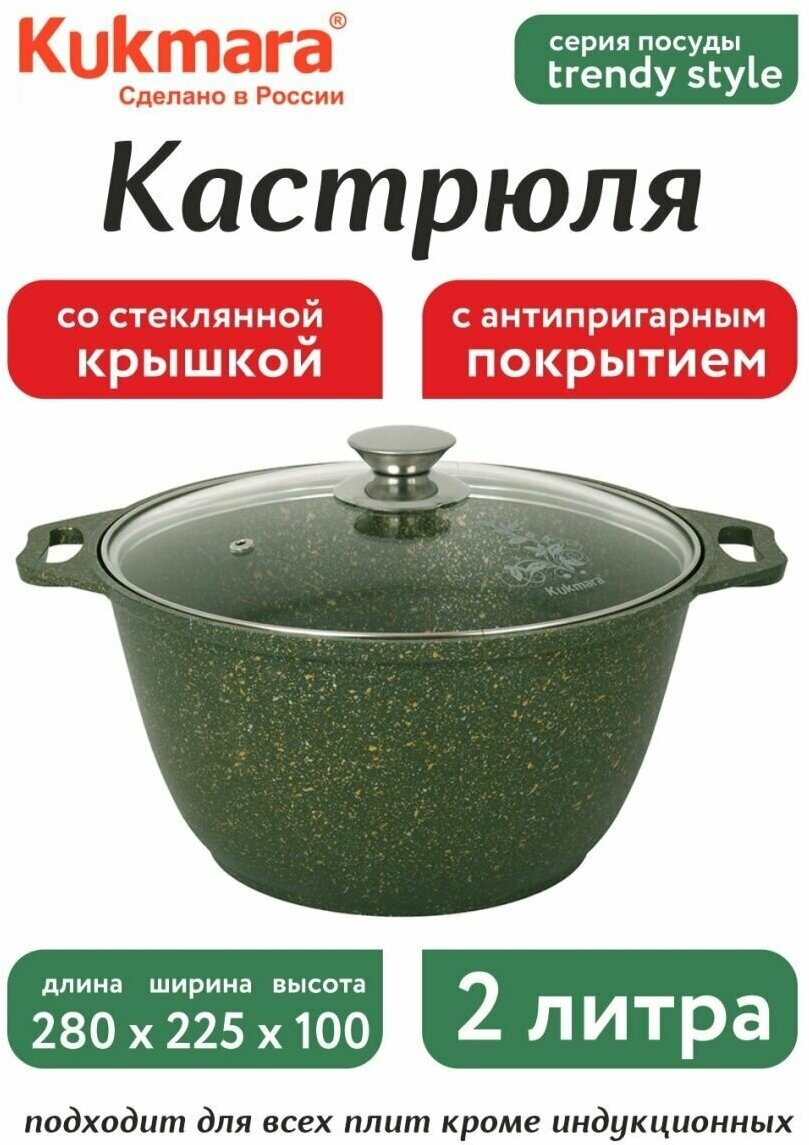 Кастрюля с крышкой кукмор к21tsml а/пр литая 2,0л стекл/кр Trendy style malachite