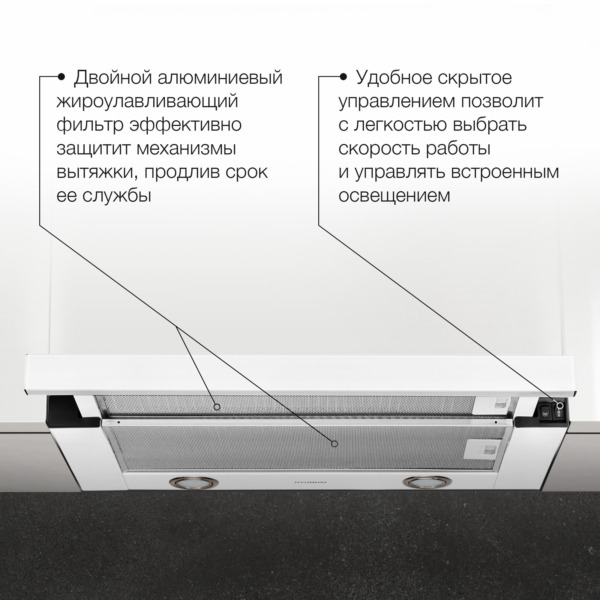 Вытяжка встраиваемая Hyundai HBH 6232 W белый управление: кнопочное (1 мотор)