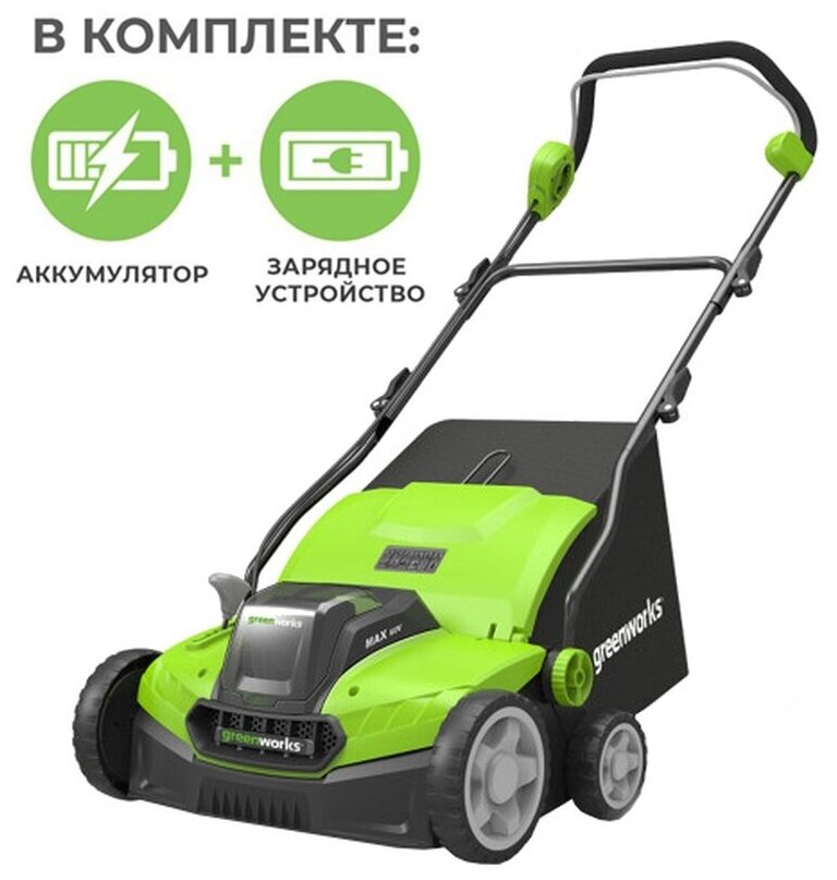 Аэратор-скарификатор GREENWORKS GD40SC36, 40v, 36 см (в комплекте АКБ 4А.ч и ЗУ)
