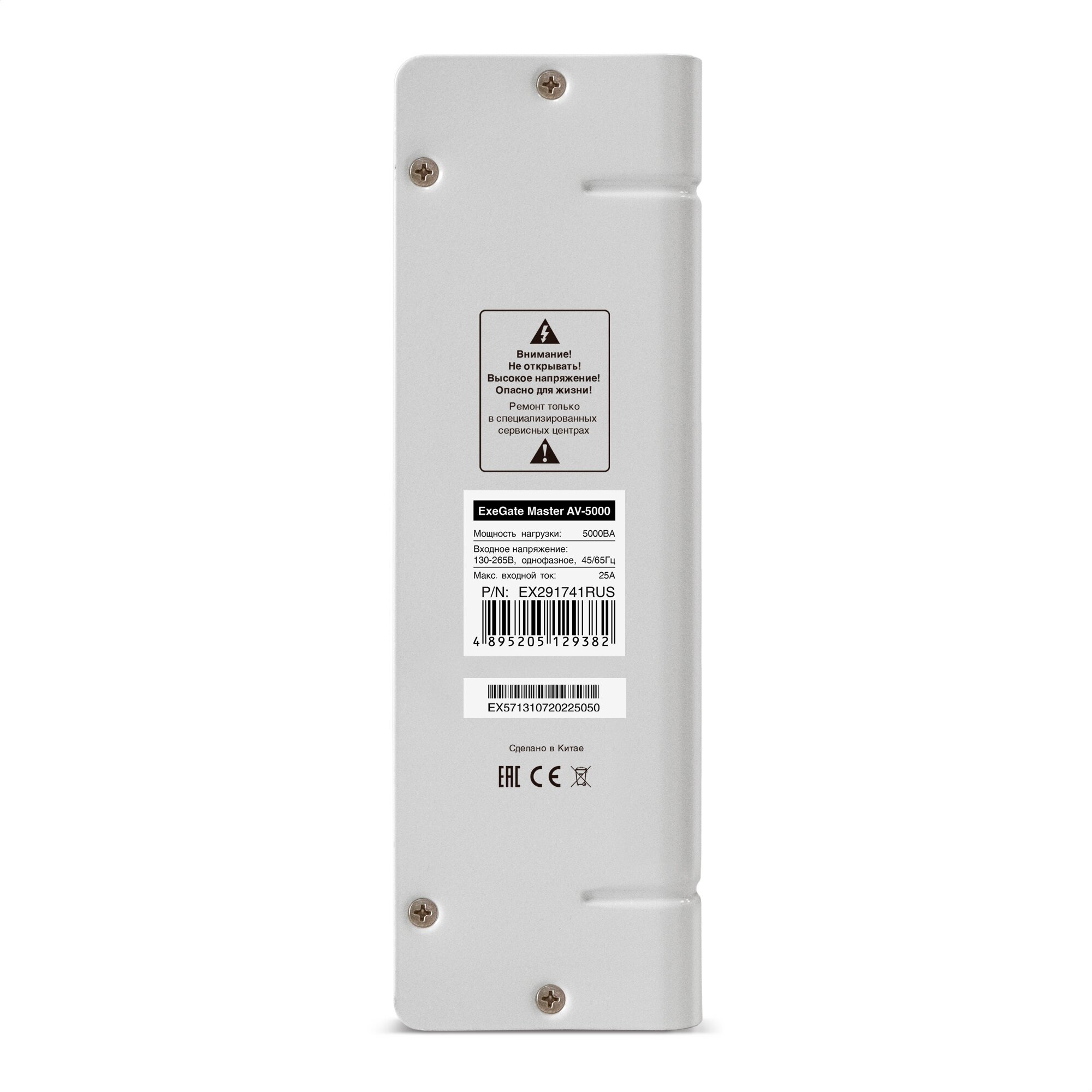 EXEGATE Сетевой фильтр Exegate EX291741RUS Стабилизатор напряжения ExeGate Master AV-5000 (5000ВА, 140-260В, цифр. индикация вход/вых. напряжения, 220В±8%, КПД 98%, 5 уровней защиты, задержка, метал.корпус, клем.колодка, RT -