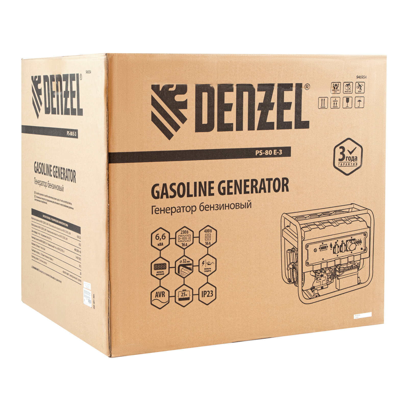 Генератор бензиновый DENZEL PS 80 E-3, 6.6 кВт, 400 В, 25 л, электростартер