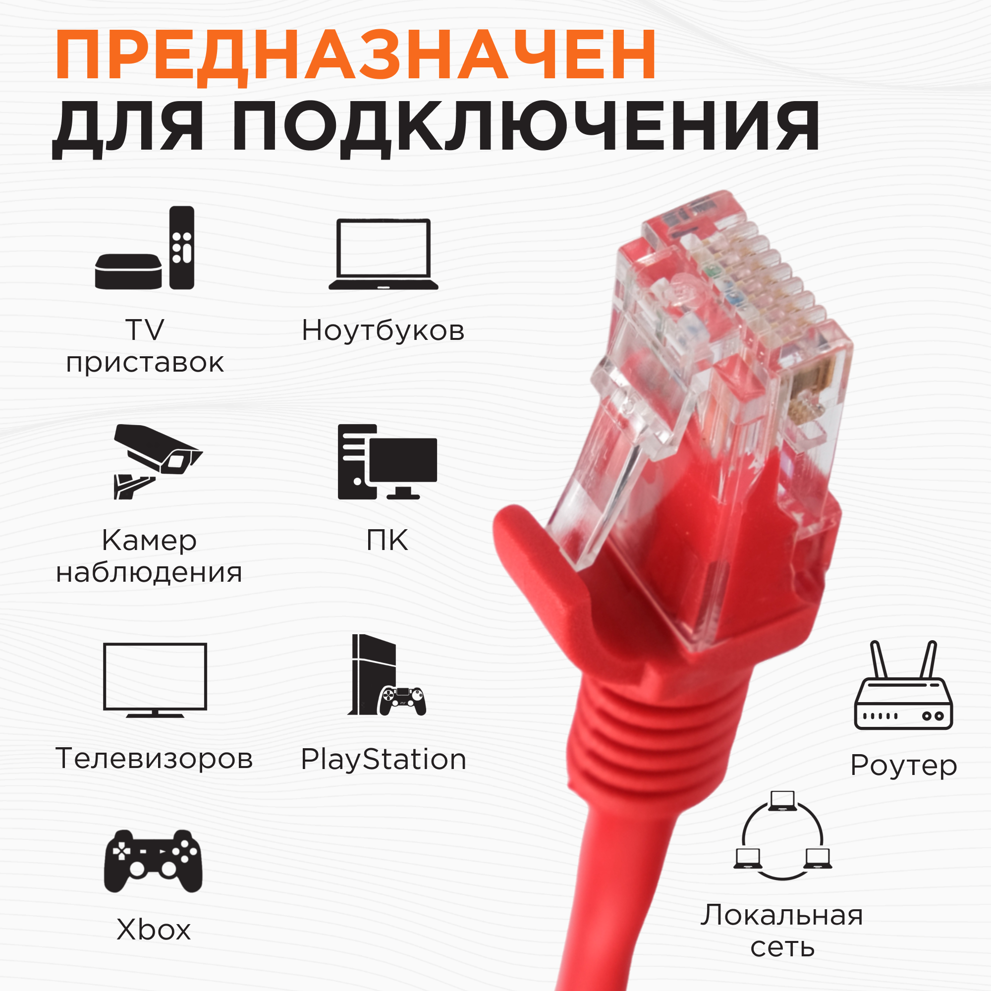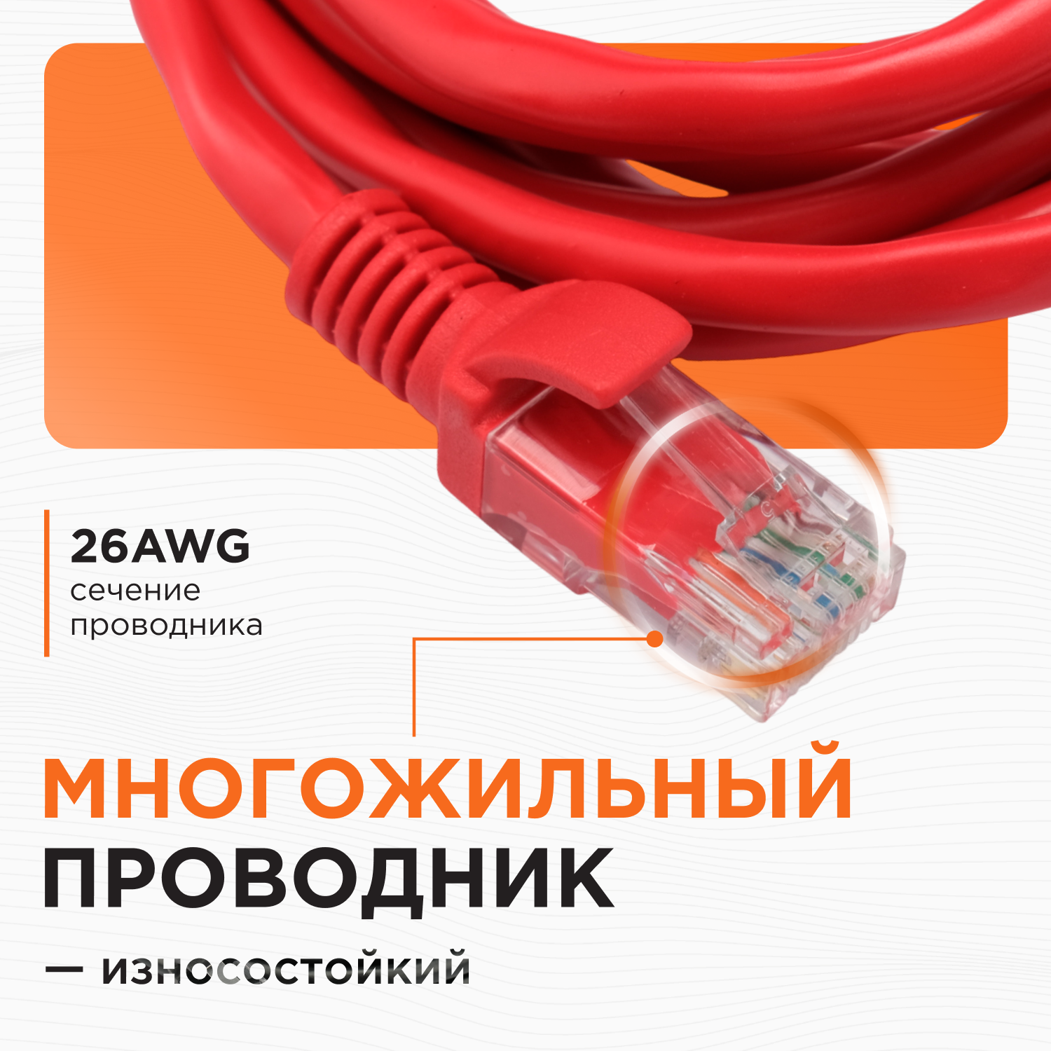 Патч-корд PP12-5M/R литой (molded), UTP, cat.5E, 5м, 4 пары, 26AWG, алюминий омедненный, 1 шт, красный 200 ₽ Подробнее