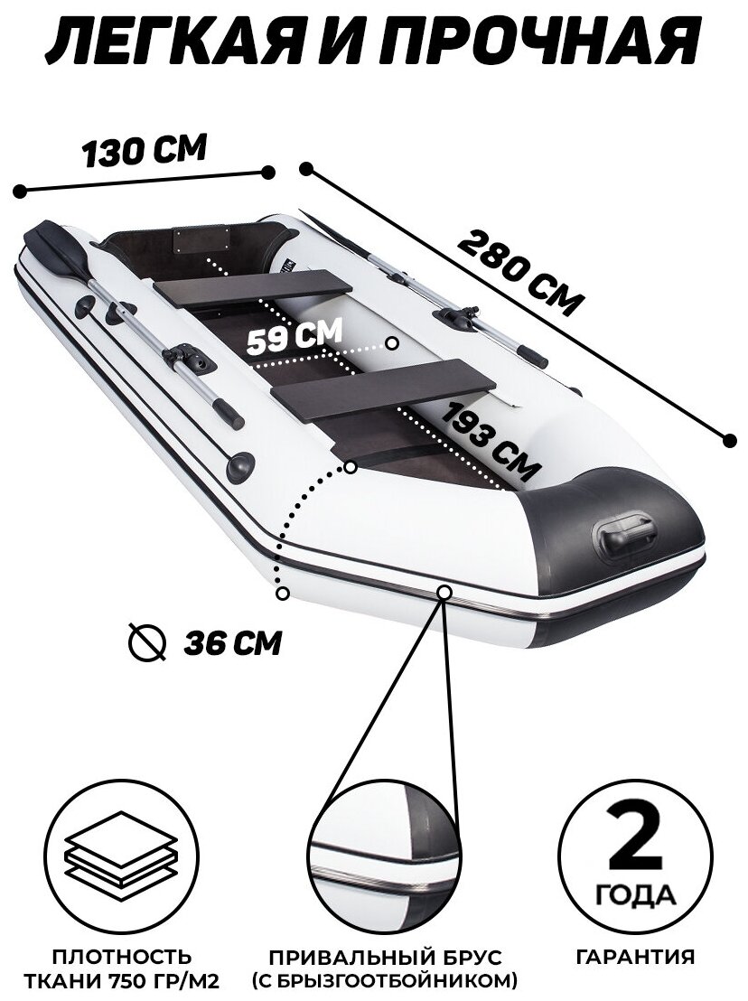Надувная лодка ПВХ под мотор Аква 2800 СКК графит/черный