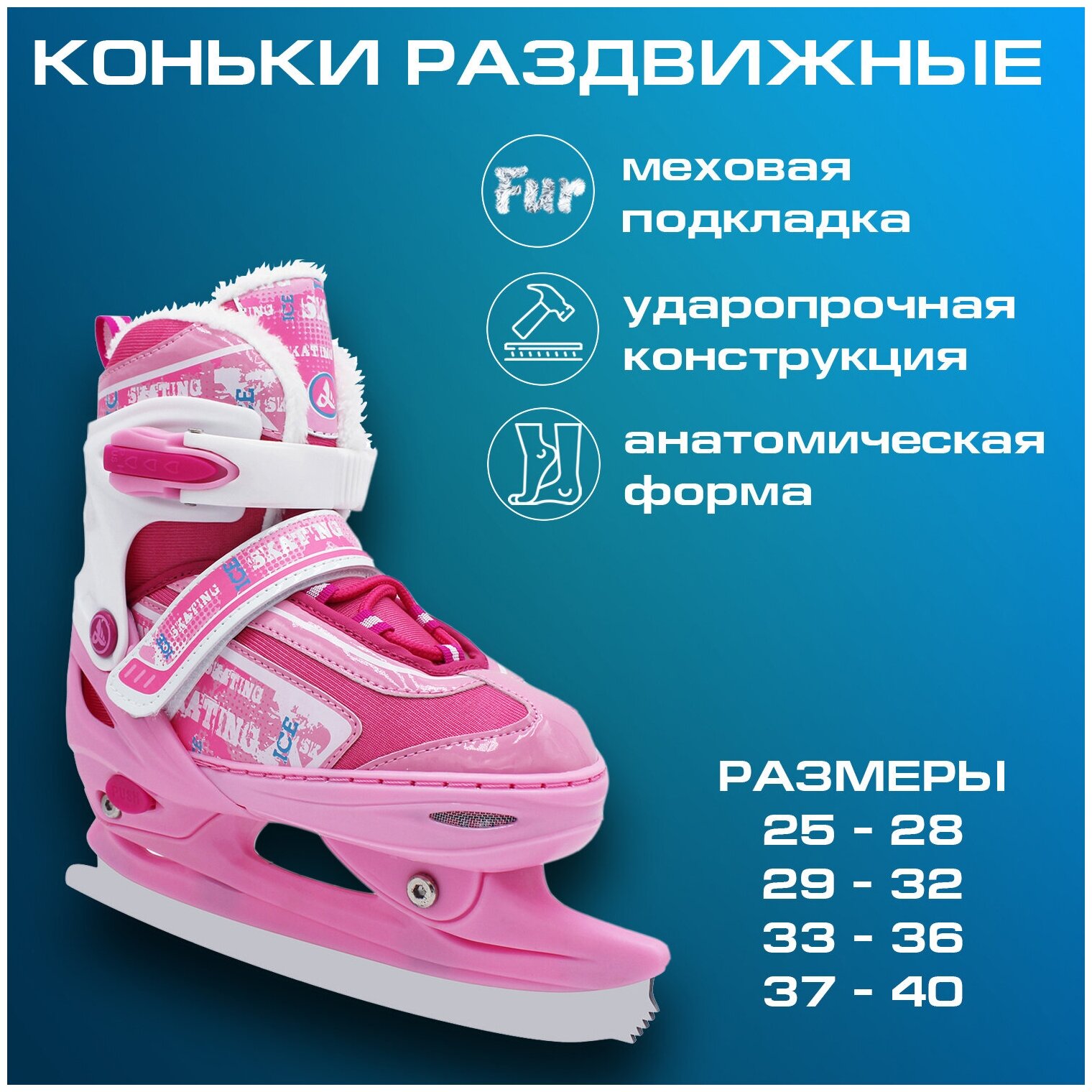 Лучшие цены. Полумягкие раздвижные утепленные с искусственным мехом коньки торговой марки "ALPHA CAPRICE" имеют отличный дизайн. Эта модель коньков сочетает в себе надежность и качество. Ботинок : морозостойкий пластик. Язык : искусственная кожа, синтетический трикотаж с поролоном. Подкладка: утепленная c искусственным мехом. Стелька : EVA. Тип фиксации : шнуровка, клипса с фиксатором, "липучка". Лезвие : универсальное, нержавеющая сталь. Магазины в вашем городе.