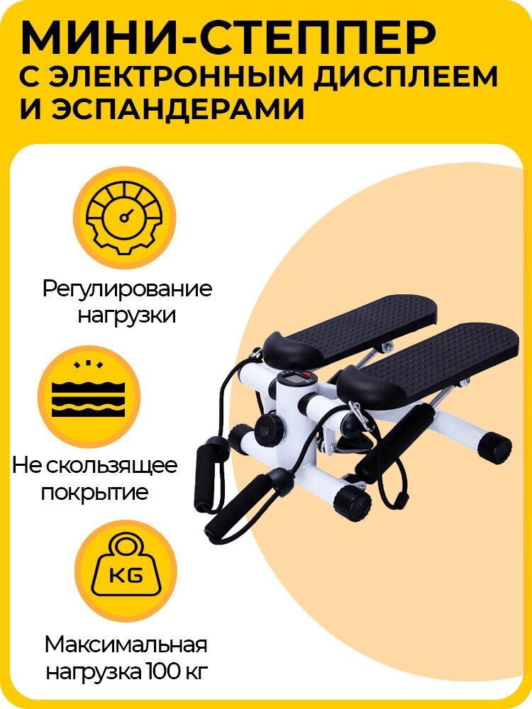 Степперы Мини-степпер с электронным дисплеем и эспандерами