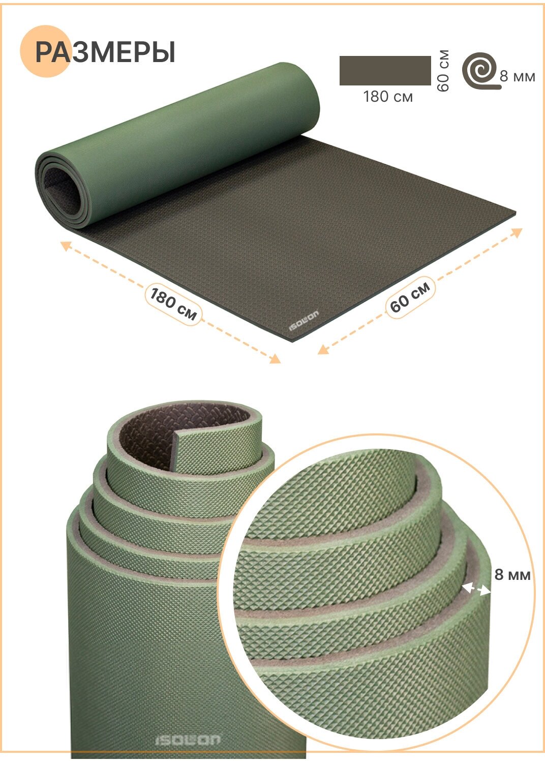 Туристические коврики Коврик для туризма и отдыха классический Isolon Tourist 8 мм, 180х60 см хаки/серый