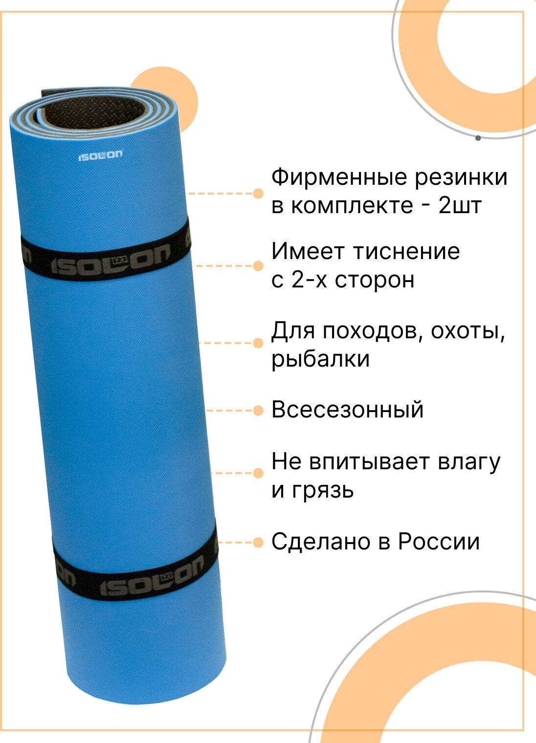 Туристические коврики Коврик для туризма и отдыха классический Isolon Tourist 8 мм, 180х60 см синий/серый