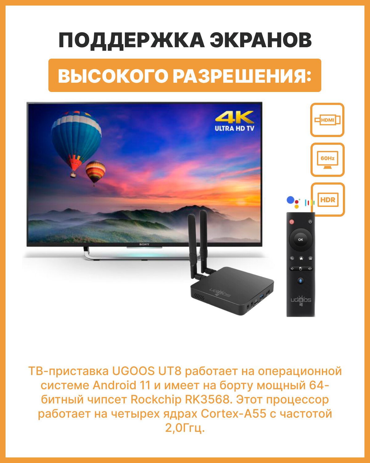 Смарт ТВ приставка UGOOS UT8 PRO Андроид 11.0 8Гб 64Гб WiFi6 1000M HD 4K Голосовой Пульт Управления