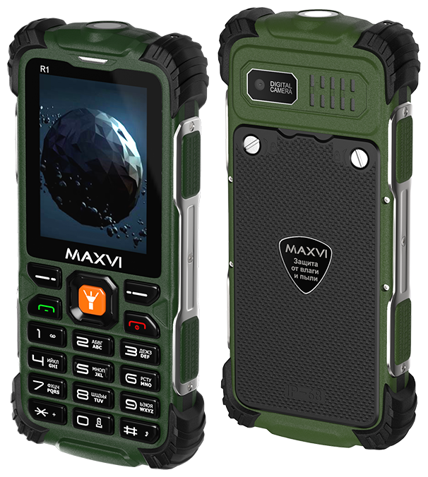 Лучшие цены. Сотовый телефон MAXVI R1 Green Maxvi R1 – со степенью защиты IP68 будет работать даже под дождём, а также легко выдержит погружение в воду. Аппарат с ёмким аккумулятором (1800 mAh), обеспечивающим надёжную связь в течение 14 часов непрерывного общения. Maxvi R1 оснащён функцией Powerbank, позволяющей Вам поделиться зарядом энергии с другими гаджетами. R1 выдержит многое в сложных условиях. Магазины в вашем городе.
