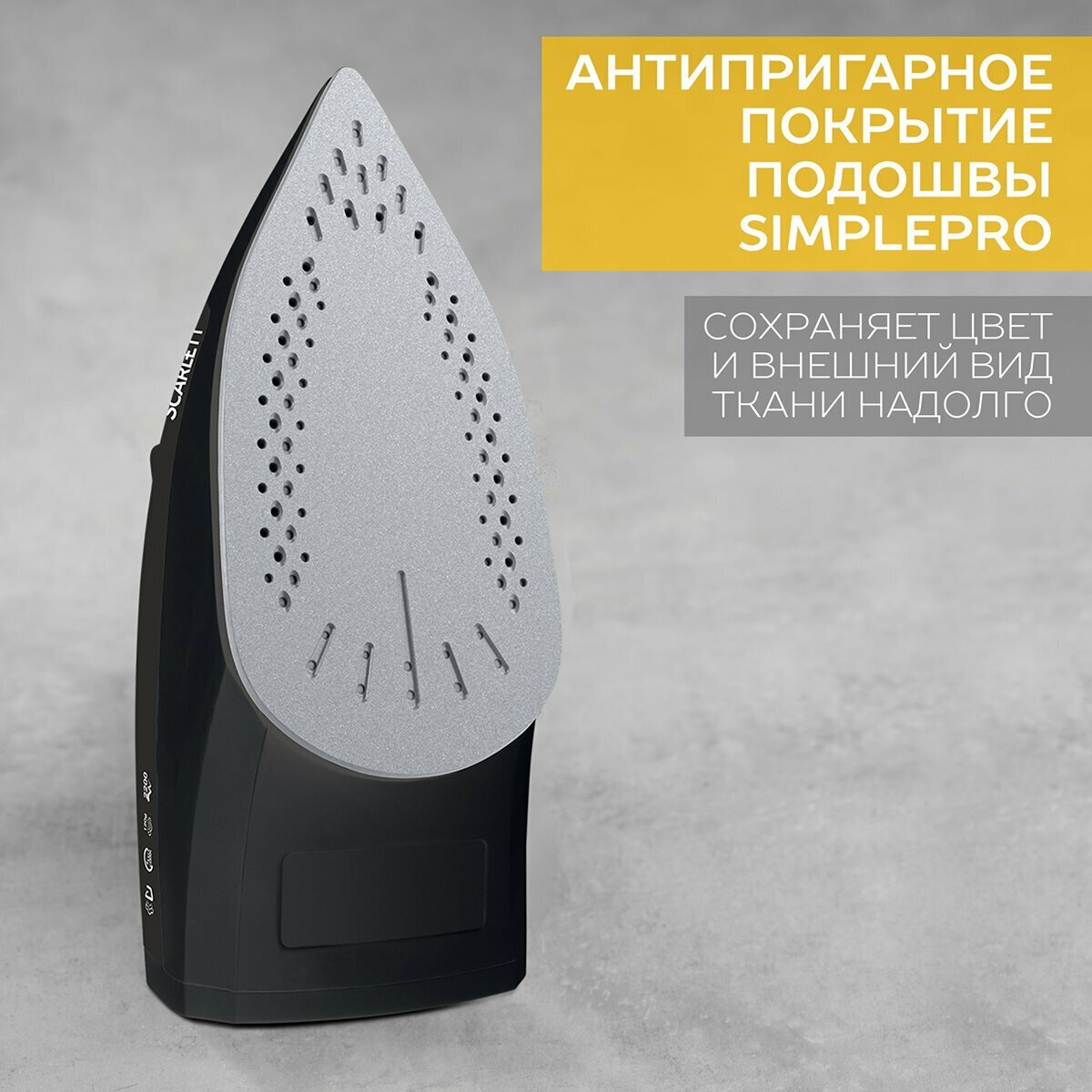 Лучшие цены. Утюг SCARLETT SC-SI30P21 выполненный в черном цвете, оснащён антипригарной подошвой, которая помогает сохранить цвет и внешний вид ткани надолго. Уход за ней не составит труда. Максимальная мощность 2200 Вт позволит в считанные минуты справиться даже с тканями со сложной фактурой, а различные температурные режимы помогут выбрать оптимальный для того, чтобы самые деликатные ткани выглядели после глажения идеально. Магазины в вашем городе.