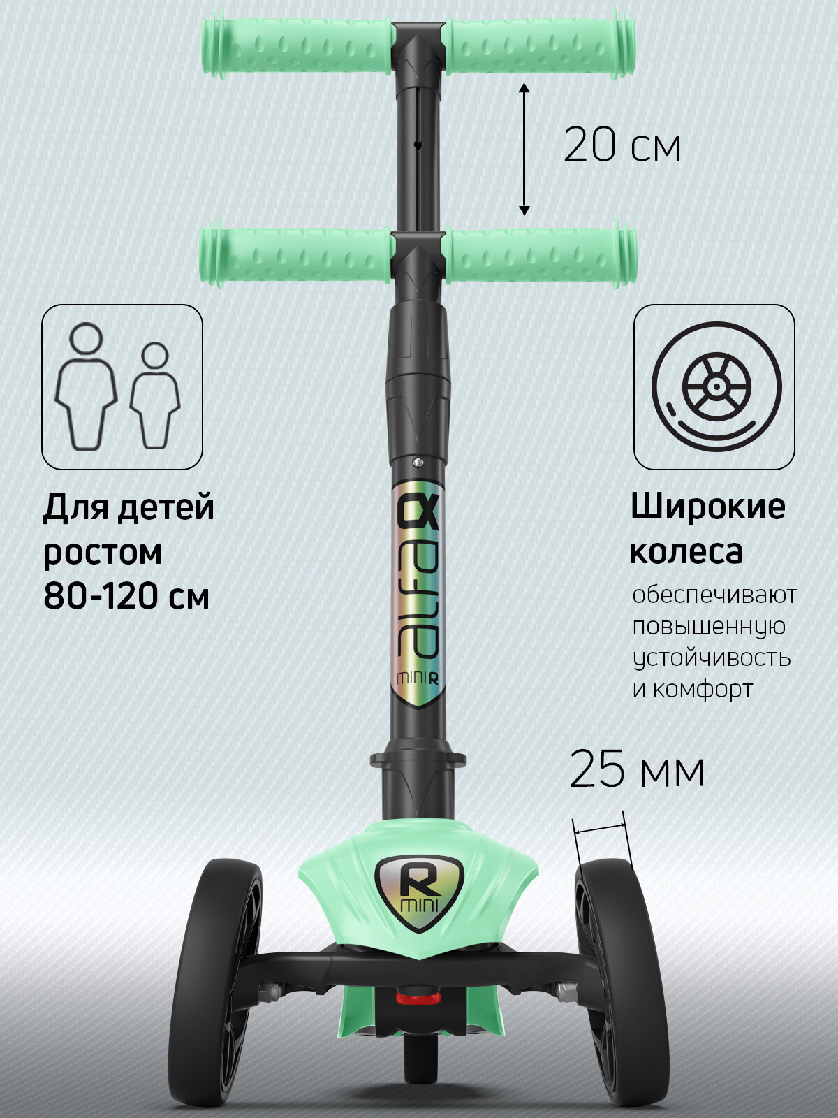 Самокат Alfa Mini R Base (фисташка 32) с не светящимися черными колесами в коробке. арт. 004-2132