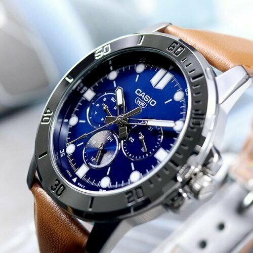 Лучшие цены. Мужские кварцевые часы в круглом корпусе на кожаном ремешке. Японская компания «Casio» известна созданием портативной электронной и вычислительной техники. В производстве часов «Casio» славится надежным качеством часовых механизмов, производимых, в основном, в Японии, разнообразием встроенных функций, а также широким ассортиментом с четко обозначенными модельными рядами, помогающими покупателю выбрать нужные часы. Магазины в вашем городе.
