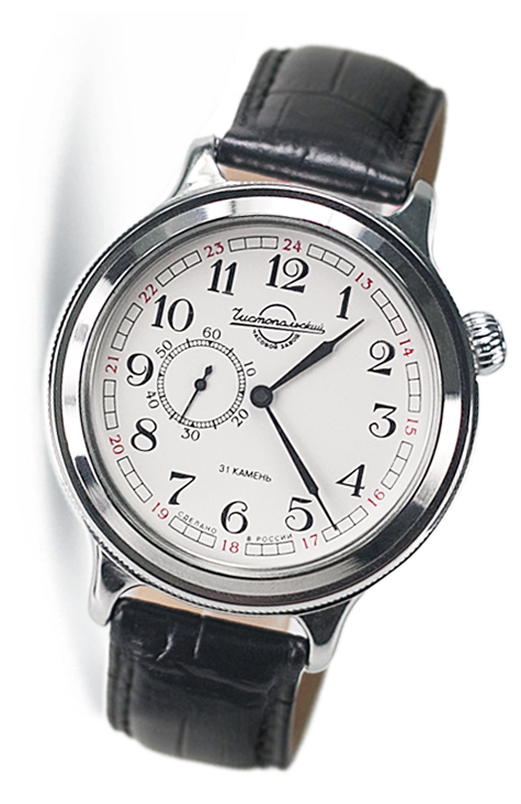 Лучшие цены. Мужские российские механические наручные часы Восток Ретро 550930 К-55 с автоподзаводом. Пружинный механизм с точностью +60/- 20 сек в сутки. Отображение времени в часовом формате 12/24. Секундная стрелка вынесена на отдельный циферблат. В механизме рубиновых камней - 31. Запас хода 31 час. Противоударное устройство оси баланса от небольших механических воздействий. Стрелки часов покрыты безопасным люминесцентным покрытием, которое светится в темноте. Магазины в вашем городе.